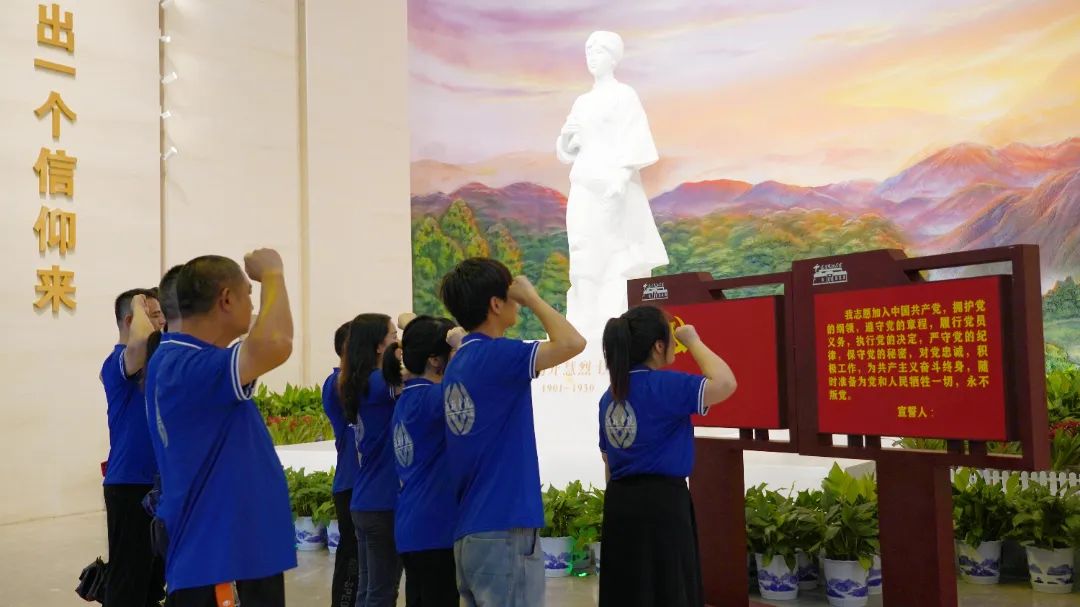 為了更深入地了解楊開慧烈士的英勇革命事跡,大家緊接著走進(jìn)了楊開慧紀(jì)念館,在楊開慧烈士的雕像前,全體黨員面向黨旗,肅然站立,高舉右拳,重溫入黨誓詞,再次用錚錚誓言表達(dá)入黨初心。隨后,通過紀(jì)念館內(nèi)豐富詳實(shí)的歷史資料,大家全面地追憶了楊開慧烈士的生平事跡。伴隨著講解員的深情講述,大家仿佛穿越時(shí)空般,親身感受到楊開慧烈士29年的壯麗人生,無私無畏、崇高的革命情懷。